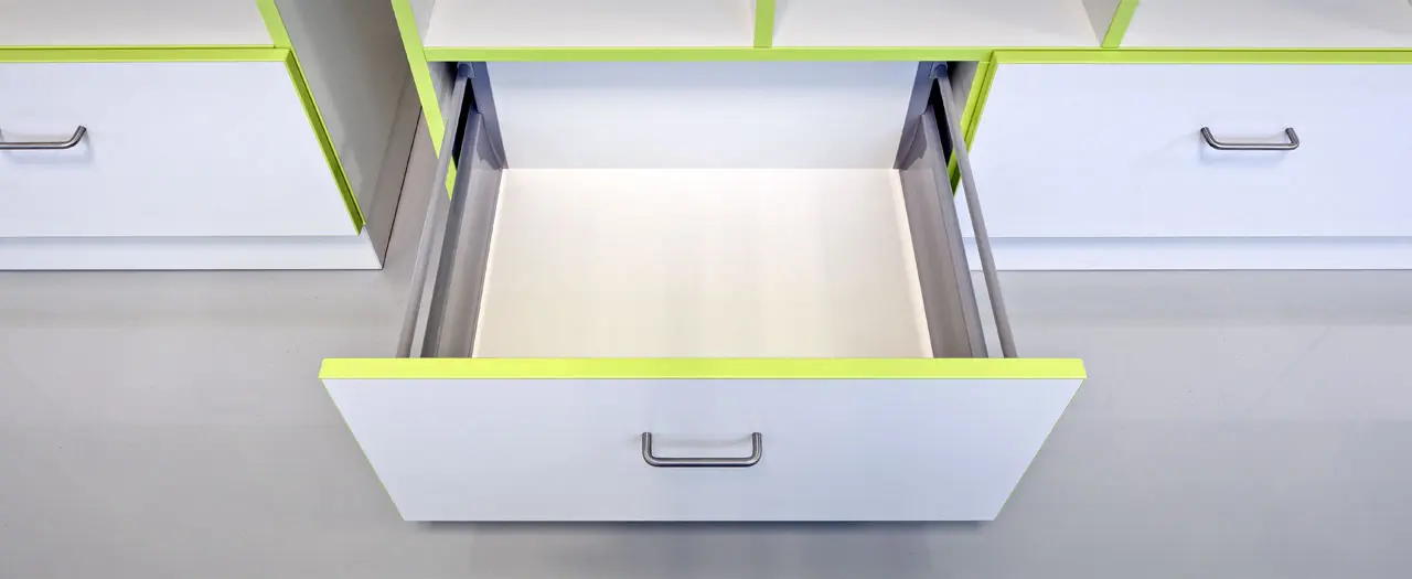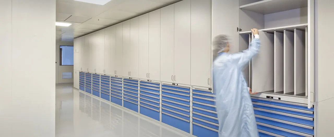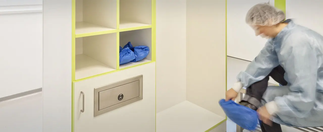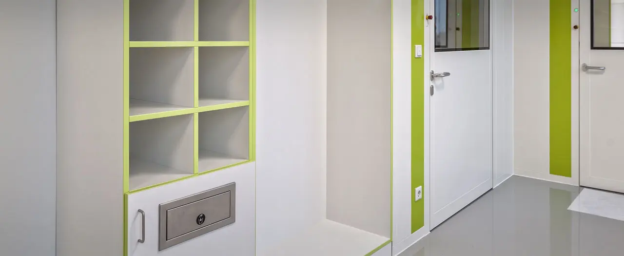 Herstellen einer Personalschleuse für einen Reinraum und Anfertigung von Aufbewahrungsschränken für Arbeitsmittel und Halbzeuge
