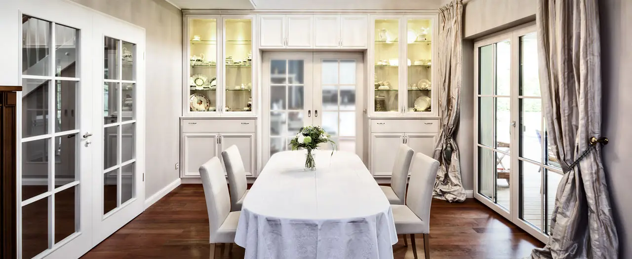 - Exelent gestaltete Vitrinen im Speisezimmer mit Durchgang zum Nebenzimmer