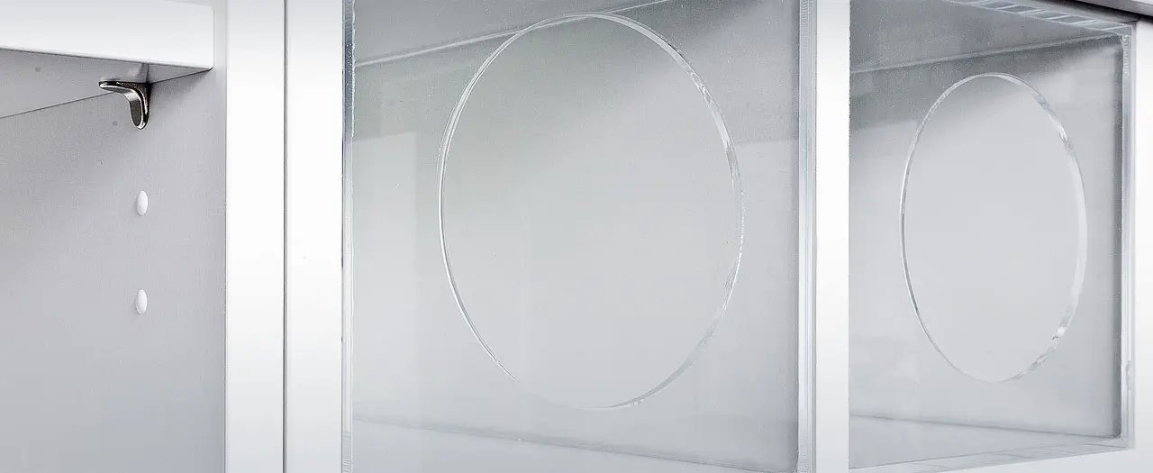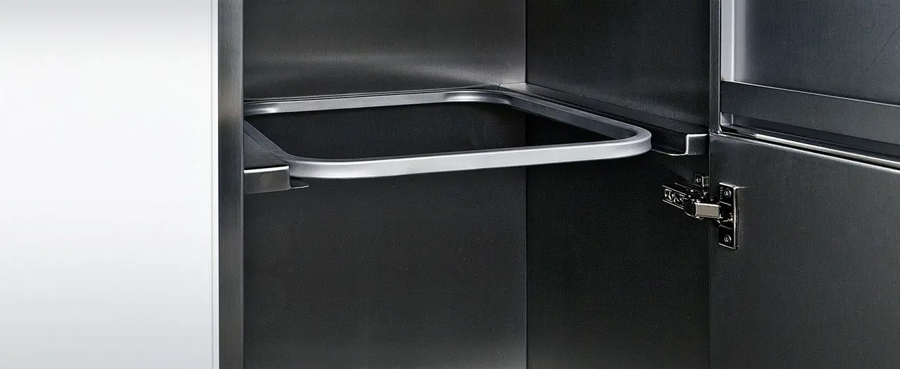 - Besonderheiten sind integrierte Acrylboxen für ein leichtes Bestücken mit Verbrauchsmaterialien sowie verschiedene Abwurfbehälter- und Klappensysteme für eine saubere Entsorgung
